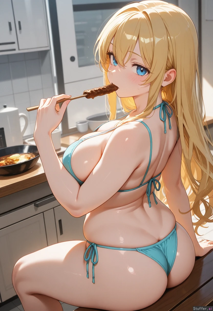 Dining_hall eating glutton blonde love_handles plump_butt