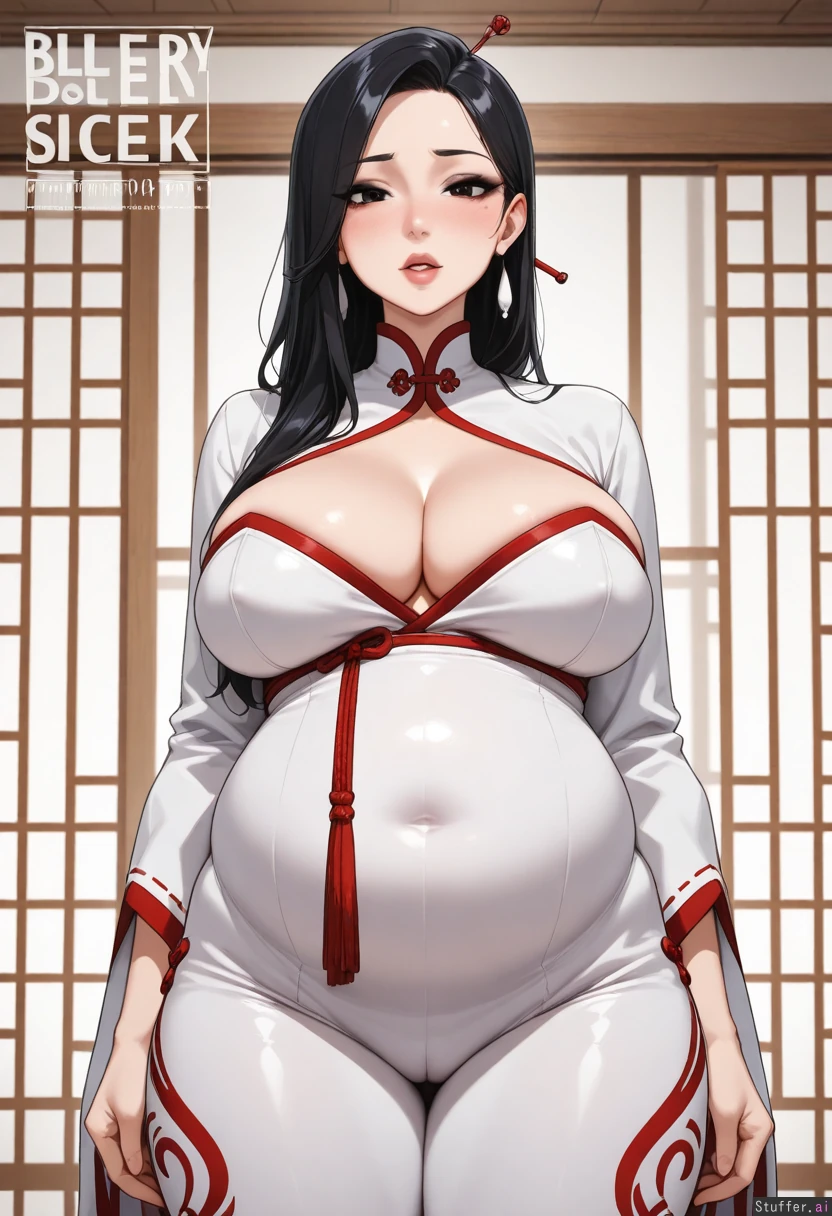 absurdres, 8k, perfect anatomy, masterpiece, beautiful face, beautiful eyes, RockSolidArt. /(artist/), RockSolidArt(artist/) ,8), (merunyaa), (usa37107692:1.2), (ohasi_art), (betterwithsalt), (flat color:1.5) (((solo, 1woman))), mature, milf, ((adult woman:1.4)), (((super ill-fitting romper-outfit:1.4, romper-lingiere))), ((black hair, (japanese hair-style:1.4), asian skin-tone, (heavy eyeliner, dark eyeshadow, dark eyeliner, looking at viewer), long hair, sideswept hair, chinese ethnicity:1.4, japanese-ethnicity, ethnic-japanese features:1.4, japanese face-features:1.4, japanese eye-shape:1.4)), super-full belly:1.2, (massive belly longer than body:1.6), hyper-huge belly:1.6, ((super-soft belly:1.4), cleavage:1.4, constricted belly, belly overflow:1.2)), ((Obese, overweight:1.4)), ((thick thighs)), ((worried)), (hyper belly:1.4, belly_inflation), ((big belly:1.4)), (hands down at sides), breasts squished together by top:1.4, (self-deprecating, submissive, flirty, timid, uncertain, nervous), ((plump_thighs, Impressive oversized thighs, plumped-fat cameltoe, Huge rear)), round plump buttocks:1.4, sagging phat-ass:1.4, (Medium plump breasts:1.4), sagging breasts, droopy breasts, (realistic breasts:1.4, natural breasts:1.4, plump-soft breasts:1.4, full_to_the_limit breasts:1.2), ((Huge full-inflated belly:1.6)), (Huge belly:1.4), (Huge potbelly:1.4), (huge bellyinflation:1.4, super belly_blush:1.4), ((hyper-belly sticking out unrealistically-further than body:1.6, super-long massive-belly distended unrealistically-longer than body:1.6, low-hanging belly:1.6)), (big pleading eyes, submissive, ((bleary-eyed:1.4, flushed face:1.4, drunk bubbles:1.4), head-tilted:1.2, motion lines)), ((desperately horny:1.4, pleading expression:1.4, ((orgasm_denial)), slight-ahegao, open mouth heavy breathing, heavy panting)), hdr, c.cu:1.2, blushyspicy:1.4, prywinko:1.4, betterwithsalt:1.2, icarusillustrations:1.4, Icarusillustrations:1.2, kittew:1.2, (spellsX\(artist\):1.3), (Coffeeslice\(artist\):1.3), (ohshinakai\(artist\):1.2), (doveymouse\(artist\):1.3), (((Super-lewd body:1.4))), (super detailed:1.2, excellent shading:1.3, vibrant coloring:1.3, watercolor:1.3, dynamic lighting:1.4), **base** (best quality), (high rating), absurd res, high res, detailed, ultra quality, ((high quality)), masterpiece, (ultra high resolution), stunning beauty, detailed face, intricate detail, sophisticated detail, exquisite detail, perfect 2D art, realistic lighting, cel shading, correct anatomy, 8k, highly detailed skin texture, 1girl, ((hyperrealistic, photorealistic, fully rendered, realistic style)), **CWG:** ((pencil sketch style), (rough lines and lineart), (realistic sketch), (detailed sketch), (technical sketch), (detailed sketch style), (excellent dynamic shading), (full color), (intricate detailed textures)), c.cu(artist), kittew(artist), prywinko(artist), spellsx(artist), ohshinakai(artist), doveymouse(artist), Ninjart1st(artist), c.cu(artist), kittew(artist), prywinko(artist), spellsx(artist), ohshinakai(artist), doveymouse(artist), Ninjart1st(artist), c.cu\(artist\):1.3), (blushyspicy\(artist\):1.2), (kipteitei\(artist\):1.2), (spellsX\(artist\):1.3), (Kittew\(artist\):1.3), (ohshinakai\(artist\):1.2), (doveymouse\(artist\):1.3), (Ninjart1st\(artist\):1.2), (Jellybelly\(artist\):1.3), (troat301186\(artist\):1.2), (toraraz\(artist\):1.3), ((highest resolution and clarity)), (perfect human anatomy), (high image clarity, sharp image focus), (4k_UHD, highly detailed, highest rating, high resolution, masterpiece quality, realistic expressions, intricate texture detail, dynamic lighting), detailed face, best quality, masterpiece, (plump:1.5), (thick), (fat:1.2), massive belly, hdr, c.cu:1.2, blushyspicy:1.4, prywinko:1.4, betterwithsalt:1.2, icarusillustrations:1.4, Icarusillustrations:1.2, kittew:1.2, (spellsX\(artist\):1.3), (Coffeeslice\(artist\):1.3), (ohshinakai\(artist\):1.2), (doveymouse\(artist\):1.3), (((Super-lewd body:1.4))), (flat colors). ((white cutline-outline):1.3). masterful comic-book shading. masterpiece drawing. well-drawn lines. simple detailed eyes. pupils. gorgeous hair. beautiful woman. full lips. goblinhordestudios. kipteitei. pewbutt. betterwithsalt