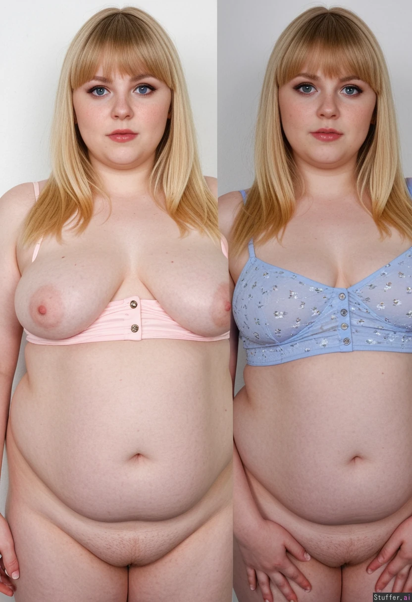 perfect anatomy, ((((Solo)))), naked tits, Ultra High Definition, Impeccable Detail, Premier Quality, Top quality, (perfect anatomy), Expressive, ((25 years old)), (solo), (extremely attractive), ((female)), (heavy makeup), pale_skin, blushyspicy, ((prywinko)), Kittew, Blonde hair, silky hair, blue eyes, (((sundress with buttons down the middle)), bangs, (pale skin) ((((weight gain before and after)))), ((from skinny to enormously morbidly obese ussbbw girl)), before: ((skinny, pretty, small, medium breasts, lithe, shy, blushing, uncertain expression, modest, fit, thin)), after: ((Round fat belly:1.7)), ((worried expression)), blushing, belly_overhang, hip_dips, (half-closed_eyes), ((morbidly_obese)), ((fat_arms)), (((puffed_cheeks))), hips_wider_than_shoulders, button_gap