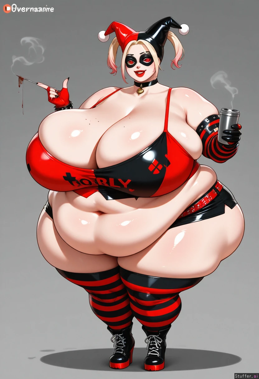 (Overmassive) (overobese) (hyper obese) immobile massive fat neck Harley Quinn