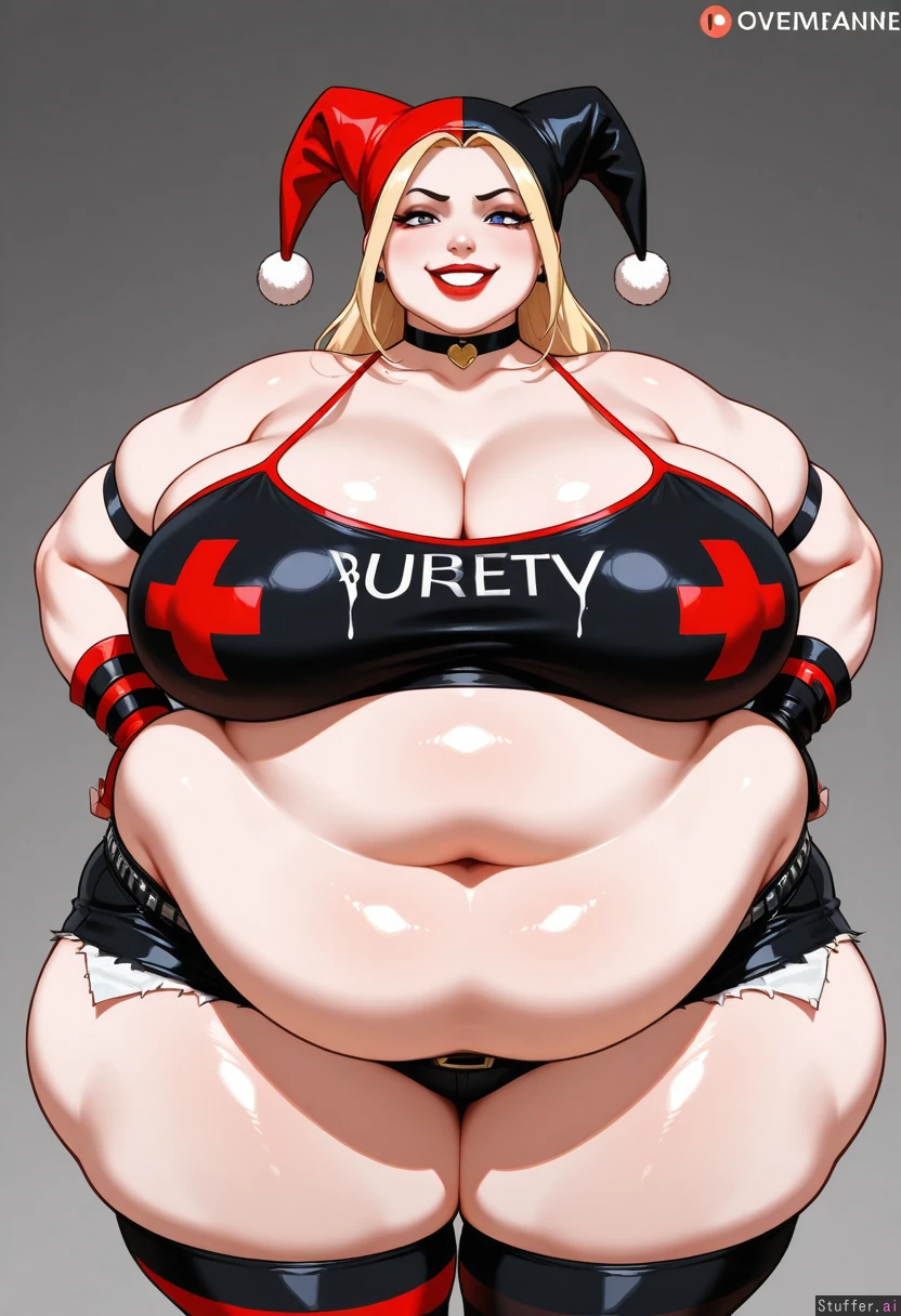 (Overmassive) (overobese) (hyper obese) (immobile) (massive) (fat neck doublechin) (overmassise belly) Harley Quinn (dc)