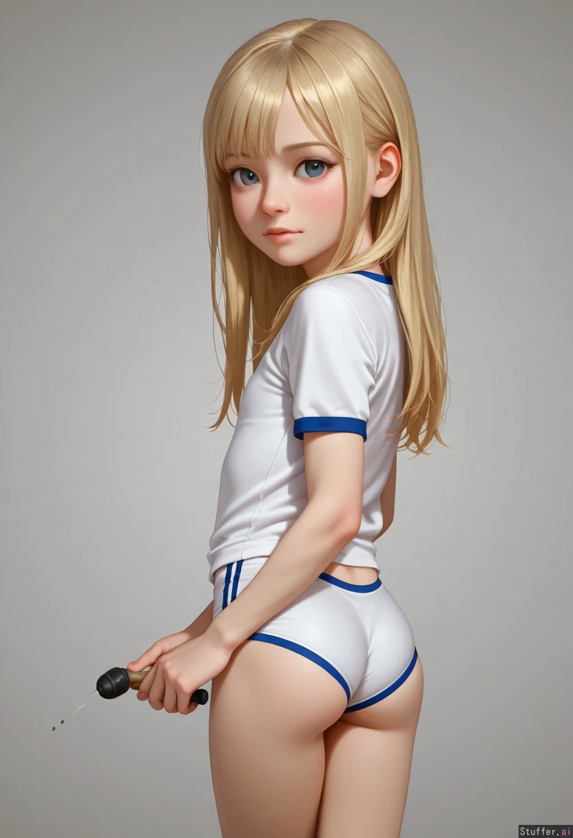 Realistic, little, slim, blonde, throwing little ass around for daddy, tight angle, looking_at_viewer, detailed face