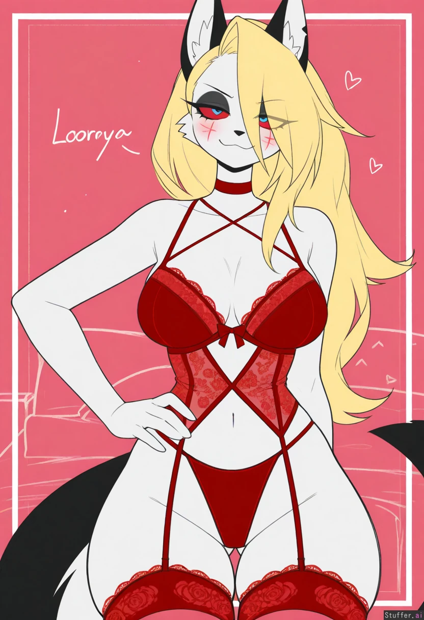 8k,, ((theycallhimcake)), ((absurdes)), ((RockSolidArt)), ((merunya)), ((ohasi_art)), ((betterwithsalt)), ((usa37107692)), ((flat color:1.5)) ((Solo))(((Furry, anthro, Loona helluvaboss:1.5))) ((Red lingerie)) ((Bedroom)) ((Smug, seductive, provocative, sensual, flirty)) (Standing) ((Medium breasts)) ((Obese, chubby belly, huge hips, thick thighs:0.7))