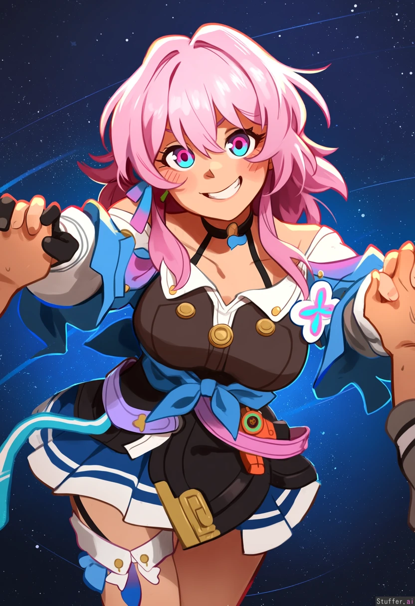 multiple_characters , stelle (from honkai star rail), March7th(from honkai star rail), posing , holding hands, @khyle