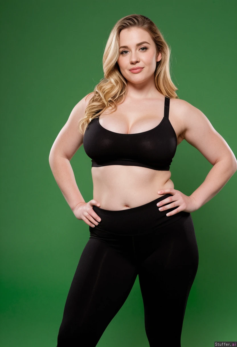 { "prompt": "Ultra photorealistic, 8k detailed full body square portrait of a seductive curvy Caucasian blonde woman who recently gained noticeable softness and weight from an indulgent post-vacation all-inclusive resort buffet holiday, weighing approximately 155-175 lbs with long wavy golden blonde hair slightly tousled from travel, soft voluptuous full-figured body with prominently rounded protruding soft belly visibly spilling over and muffin-topping the extremely tight high-waisted black yoga pants waistband by 3-4 inches creating clear overhang, soft roll and slight bloating from holiday feasts, full round prominent breasts strongly accentuated and lifted by tight sports bra with deep cleavage, very wide voluptuous hips noticeably broader than her shoulders for extreme pear-influenced hourglass, thick powerful thighs with soft jiggle. She has a soft emerging double chin adding natural post-vacation fullness to her face. Wearing only skintight black sports bra ultra compressive pushing up chest with visible stretch and tension from recent gain, skintight high-waisted black yoga pants clinging relentlessly with extreme fabric stretch, tension lines, slight sheen and soft transparency on stretched areas over wide hips and thick thighs from added curves. Standing confidently straight-on facing the camera fully frontal in a bright professional photography studio, feet shoulder-width apart, hands relaxed on wide hips or lightly at sides, seductive powerful stance with slight arch in back to emphasize prominent post-holiday belly and curves, intense direct eye contact, slightly parted glossy lips with a knowing satisfied smile, professional bright high-key studio lighting: multiple large softbox key lights from front and sides for even bright illumination with minimal soft shadows, subtle gentle rim light for soft separation, clean plain vibrant green seamless background (green screen style for easy compositing), no distractions or props, highly detailed realistic skin texture with pores, natural sheen, subtle holiday tan lines if visible, ultra sharp focus from head to toe on face including emerging double chin, prominent soft belly spillover and roll, fabric details and body contours, bright empowering cinematic mood with post-vacation relaxed sensuality, razor sharp, hyper photorealistic, realistic non-idealized everyday body proportions after indulgent holiday eating", "negative_prompt": "slim, skinny, thin, athletic, fit, toned abs, flat stomach, low body fat, model figure, supermodel, narrow waist, defined muscles, underweight, deformed proportions, idealized beauty, no belly fat, no muffin top, no spillover, pre-vacation body, hungry look", "parameters": { "style": "ultra photorealistic, high-key studio portrait photography, post-vacation weight gain theme", "format": "square full body composition", "lighting": "bright high-key professional studio, multiple large softboxes for even bright wash, minimal soft shadows, clean airy atmosphere, no dark moody elements", "hair": "long wavy golden blonde, slightly messy post-travel look", "face_features": { "expression": "intense seductive gaze straight to camera, confident alluring with satisfied post-feast vibe", "chin": "soft emerging double chin from recent gain, natural subtle fullness under jawline" }, "body_proportions": { "shoulders": "relatively narrower", "hips": "very wide voluptuous, noticeably broader than shoulders", "belly": "prominently soft rounded protruding, clear visible spillover over waistband by 3-4 inches, pronounced muffin top overhang roll and slight bloating from buffet indulgence", "breasts": "full round prominent, heavily pushed up and squeezed by bra", "thighs": "thick powerful, pants clinging tightly with visible tension and softness" }, "clothing_details": [ "skintight black sports bra, ultra compressive, strong lift and cleavage, visible stretch from added volume", "skintight high-waisted black yoga pants, extremely tight, waistband digging in, extreme belly spillover/muffin top, fabric stretched thin over wide hips thick thighs with sheen" ], "pose": "standing straight-on frontal view facing camera directly, full body from head to feet, confident relaxed stance, hands on hips or sides, body slightly arched to accentuate prominent belly and hip width", "mood": "sensual, bold, empowering, bright inviting high-key with post-vacation indulgent confidence", "environment": "minimalist bright professional photography studio, plain seamless vibrant green background (classic green screen, pure even color for post-production, no objects)", "camera": "full body square frame, medium distance, shallow to moderate depth of field, shot on high-end cinema camera style, ultra sharp focus throughout" } }