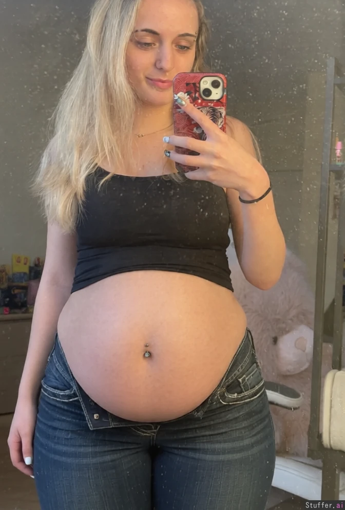 Give her a heavily obese belly, make her thighs thicker, make her belly hang (big belly:4.5)