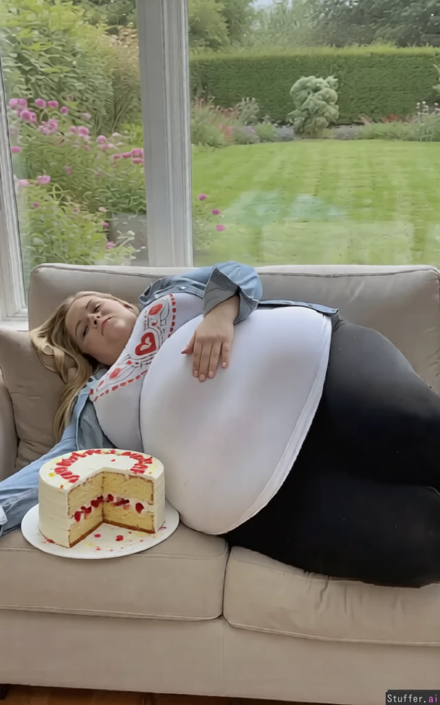 Put a big half eaten cake next to her