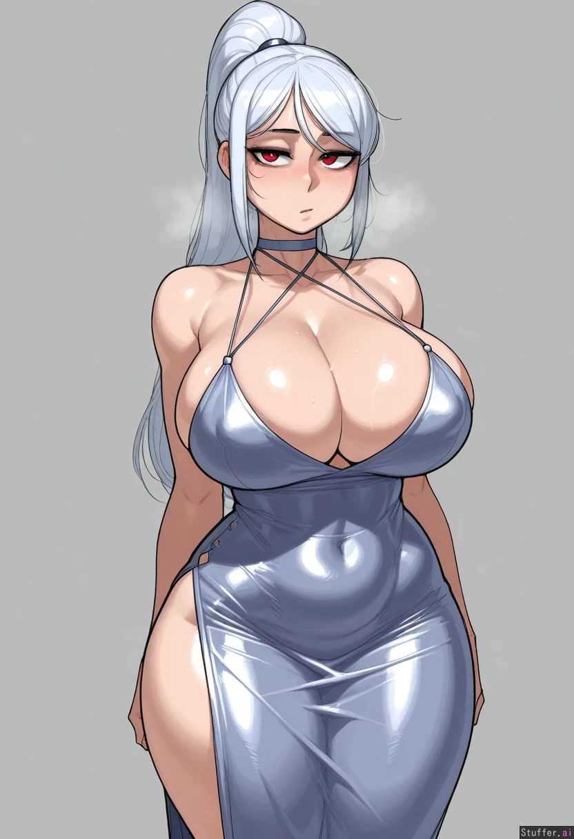 White hair very cute, dress, ((krekkov))((high ponytail))