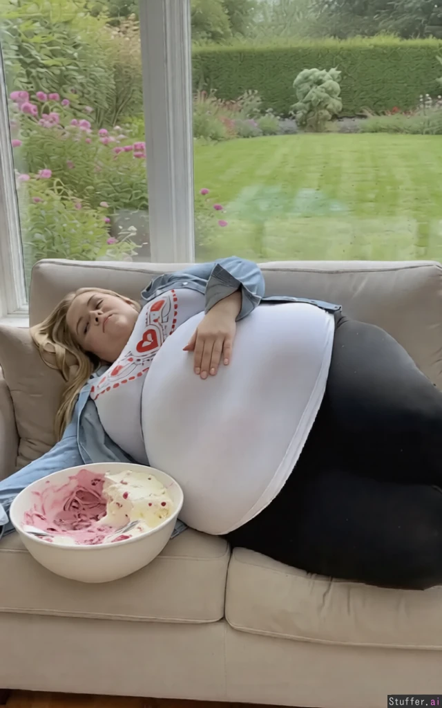Put a big bowl of half-eaten icecream next to her on the sofa ,