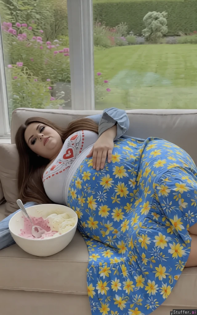 Give her long straight hair and a fat bloated summer skirt