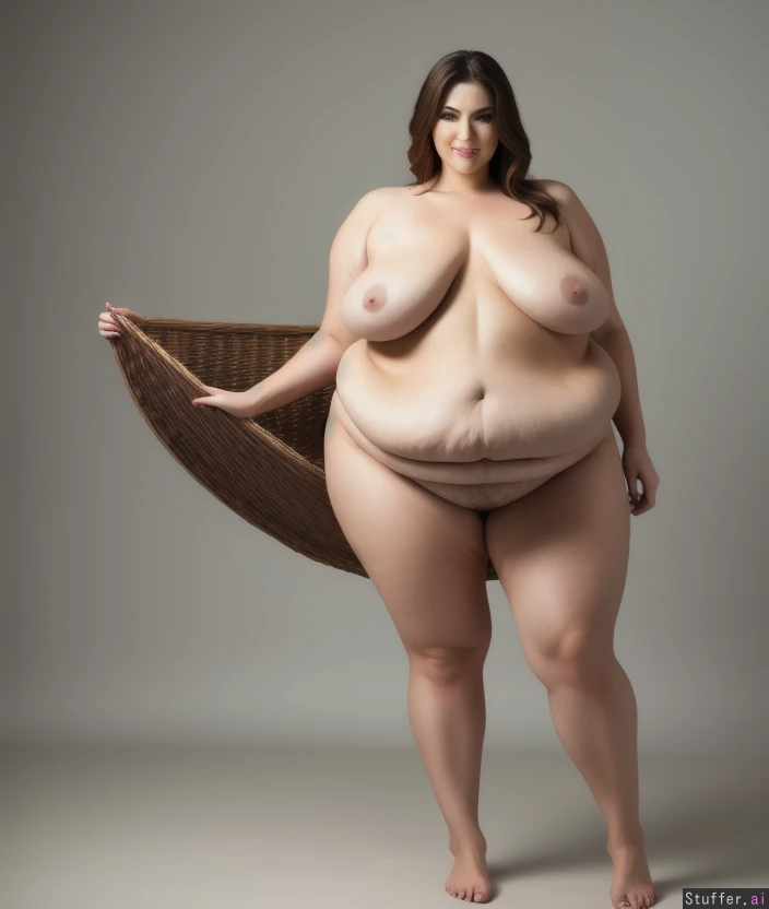 Full body view of beautiful naked model woman, she is fully customizable with selective squishy fat pumping