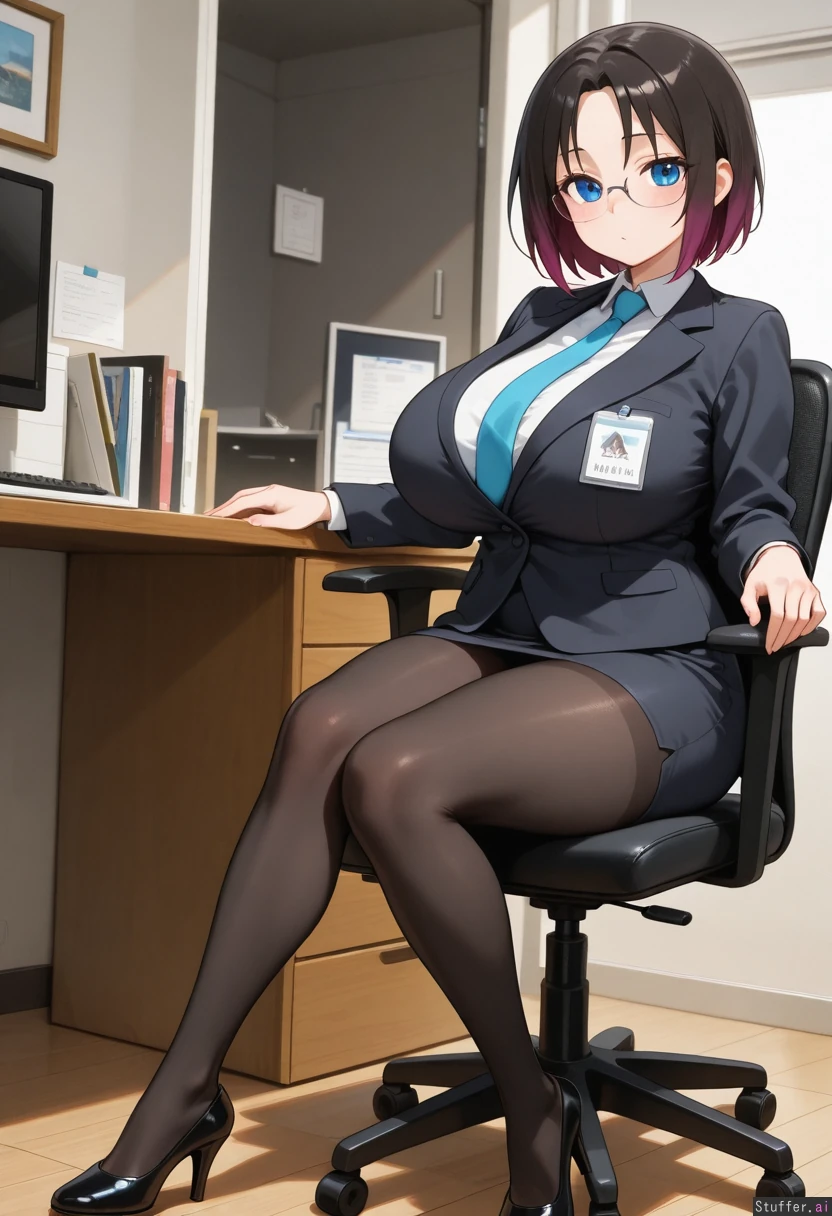 **character** elma_(maidragon), **artist** Bamboo_ale(artist) **clothes** Office_outfit, glasses, black_tights **settings** Office, sitting_on_office_chair **body** (Tall:1.2), long_legs ((Wide_hips), (hyper_fat_belly), (gigantic_breasts), (gigantic_belly), (gigantic_ass), (gigantic_thighs), (morbidly_obese_female), (love_handls), (bellyheavy) (Fat_arms), (fat_legs),:0.1),