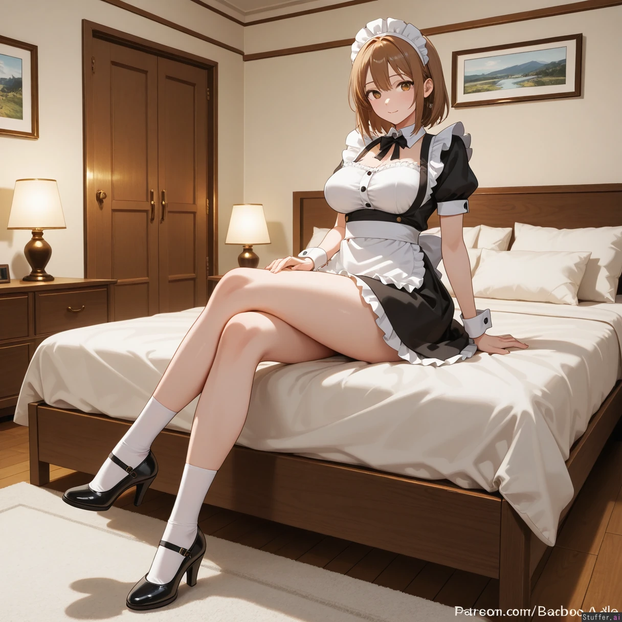 **character** **artist** Bamboo_ale(artist) **clothes** Maid_outfit **settings** full_body, 1girl, living room, siting_on_bed, **body** (Tall:1.2), long_legs ((Wide_hips), (hyper_fat_belly), (gigantic_breasts), (gigantic_belly), (gigantic_ass), (gigantic_thighs), (morbidly_obese_female), (love_handls), (bellyheavy) (Fat_arms), (fat_legs),:0.1),
