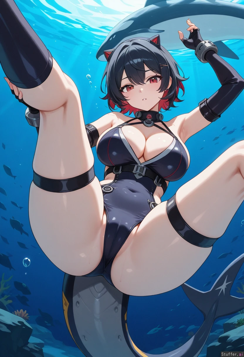 **character** ((Ellen_Joe(Zenless_Zone_Zero))), orca_girl, milf **artist** Bamboo_ale(artist) **clothes** Swimsuit **settings** full_body, 1girl, underwater, spread_legs, horny, hand_on_pussy **body** (Tall:1.2), long_legs ((Wide_hips), (hyper_fat_belly), (gigantic_breasts), (gigantic_belly), (gigantic_ass), (gigantic_thighs), (morbidly_obese_female), (love_handls), (bellyheavy) (Fat_arms), (fat_legs),:0.1),