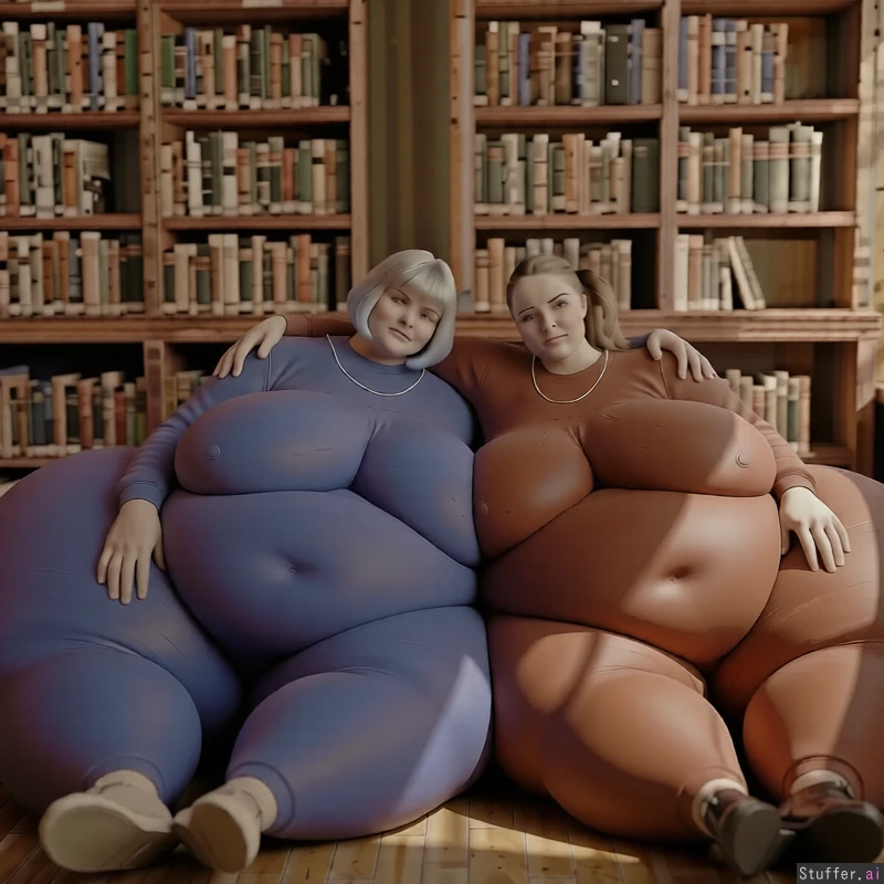 high quality, masterpiece, realistic lighting, high detail, make their ass bulging and massively bigger and wider and hanging, their thighs are extremely massive and fat, their hips are extremely wide and fat,arms around shoulders