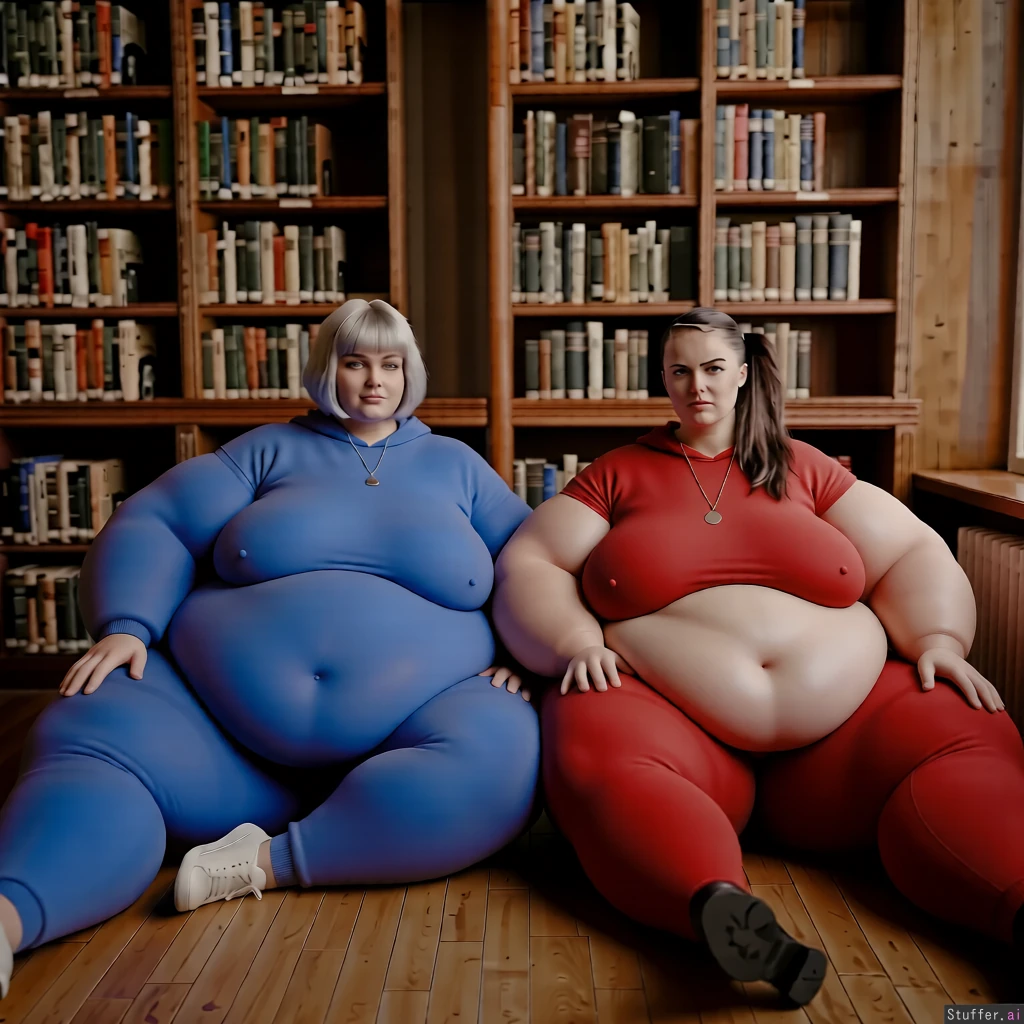 high quality, masterpiece, realistic lighting, high detail, make their bellies and breasts bulging and massively bigger and wider and hanging, massive fat arms, keep them in frame, higher saturation and contrast, keem them clothed, extend the image