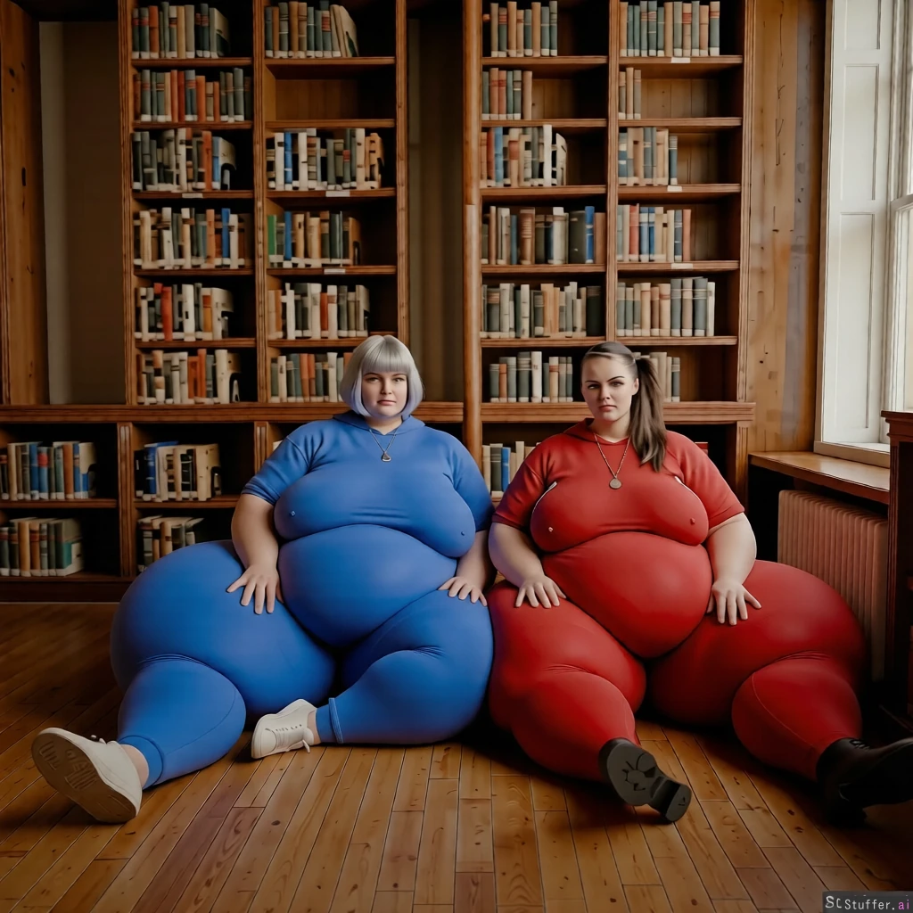 high quality, masterpiece, realistic lighting, high detail, higher saturation and contrast,make their ass and hips and thighs bulging and massively bigger and wider and hanging, fat arms,
