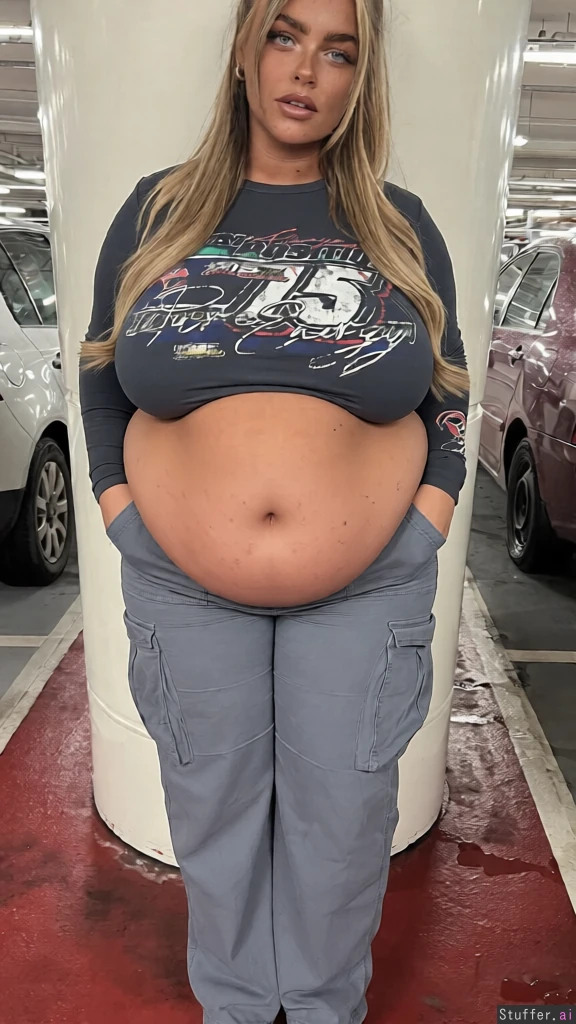 best quality, extremely_obese, body_massive_and_soft, very_large_hanging_belly, very_big_fat_heavy_natural_breasts, extremely_wide_hips_and_thick_thighs, body_overflowing_naturally, heavy_weight_gain, same_pose_and_framing, realistic_mass, same_look_but_significantly_heavier, bigger_top_on, remove watermark,