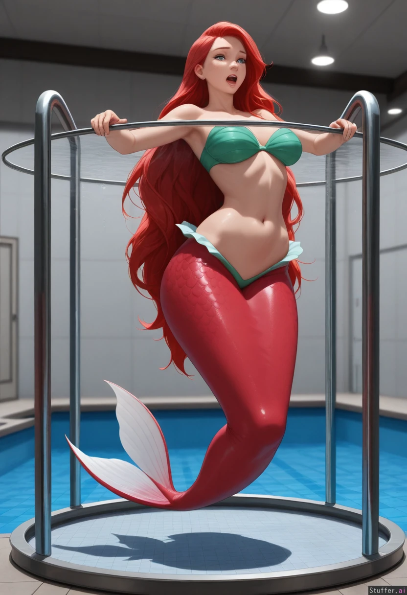 (Ultra realistic shadows, ultra realistic lighting, ultra realistic hands, ultra realistic eyes, ultra realistic hairs), (16K, UHD, HDR, masterpiece, sharp focus, high rating, perfect anatomy, perfect proportions), ((Ariel mermaid, of Walt disney)), (solo), (very tall mature woman, 25 years old, inner navel, perfect skin), (expressive, hungry, light blush, slim, skinny), (belly:0.5), (Ariel mermaid in transparent pool with bar), (moaning), (enormous belly:0.0), full body, wide hips, (highest quality, Realism:1.5), Realistic, fire down pool