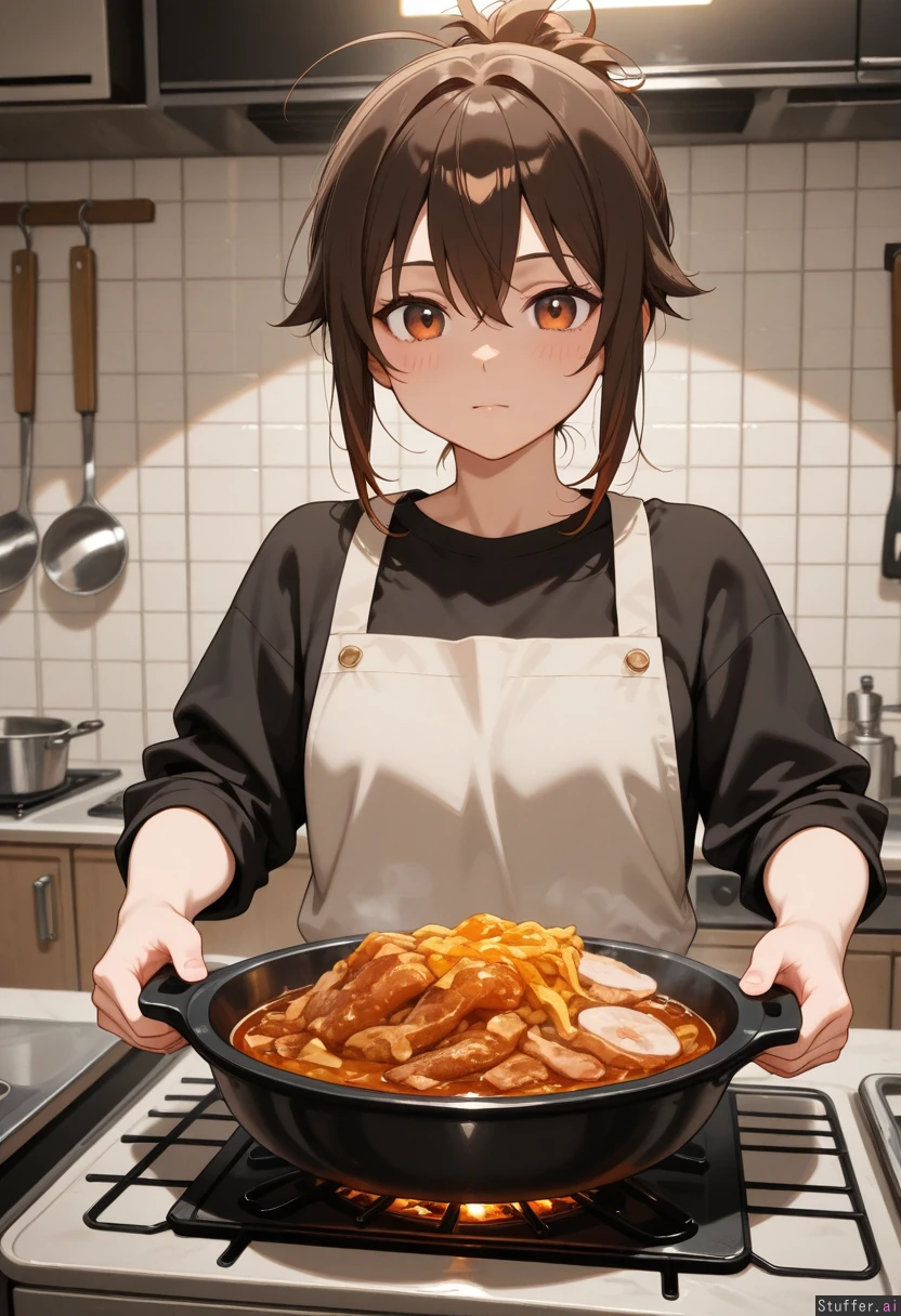 Man fish is fried over an open kitchen fire
