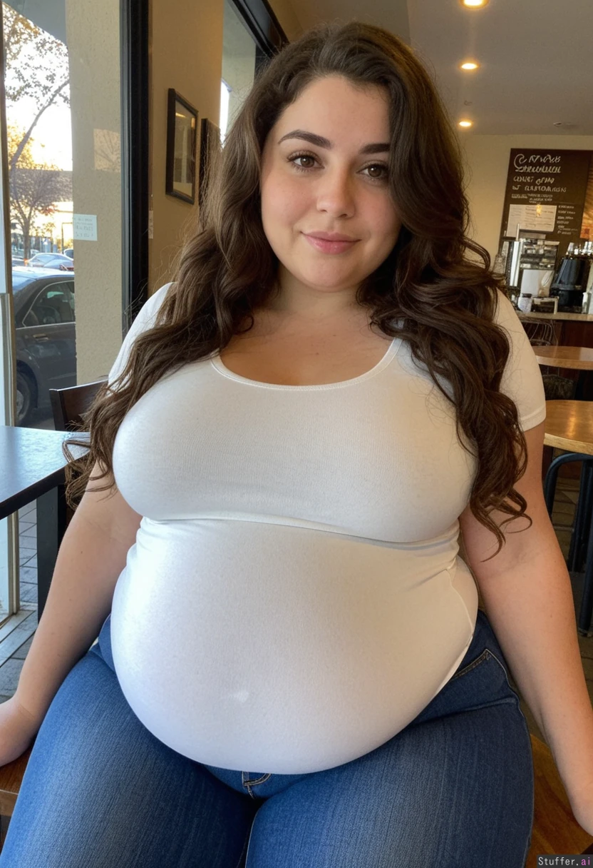 (Tight shirt:1.5) , jeans