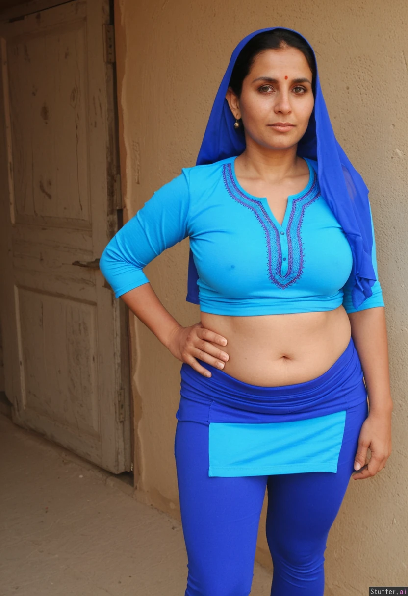 female. Wide hips. Perfect tits. thunder_thighs. Average build. Age is 45 years old. Traditional pakistani villager. Wearing tight_fit clothes.