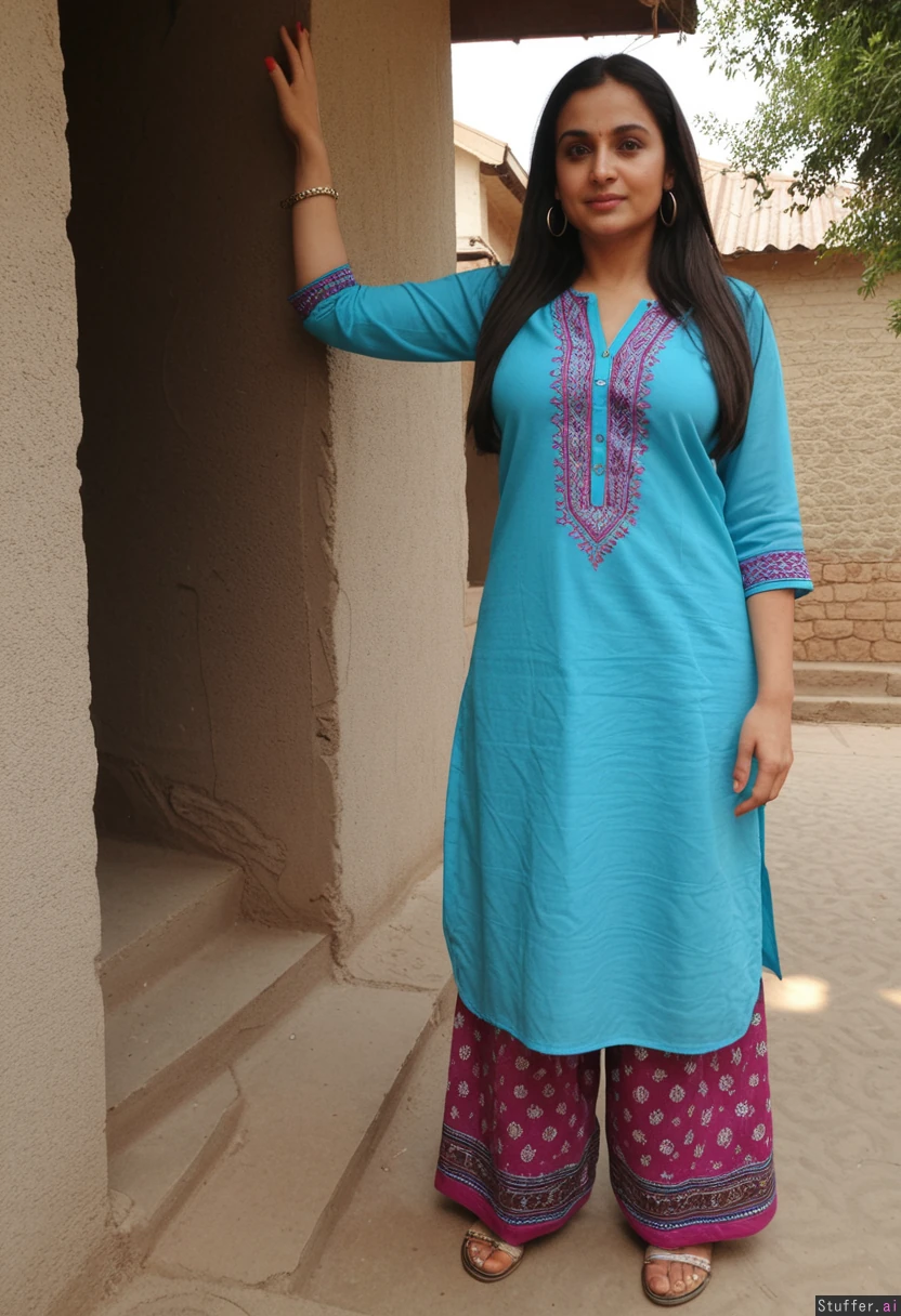 female. Wide hips. Perfect tits. thunder_thighs. Average build. Age is 48 years old. Traditional pakistani village aunty. Wearing salwar kameez.