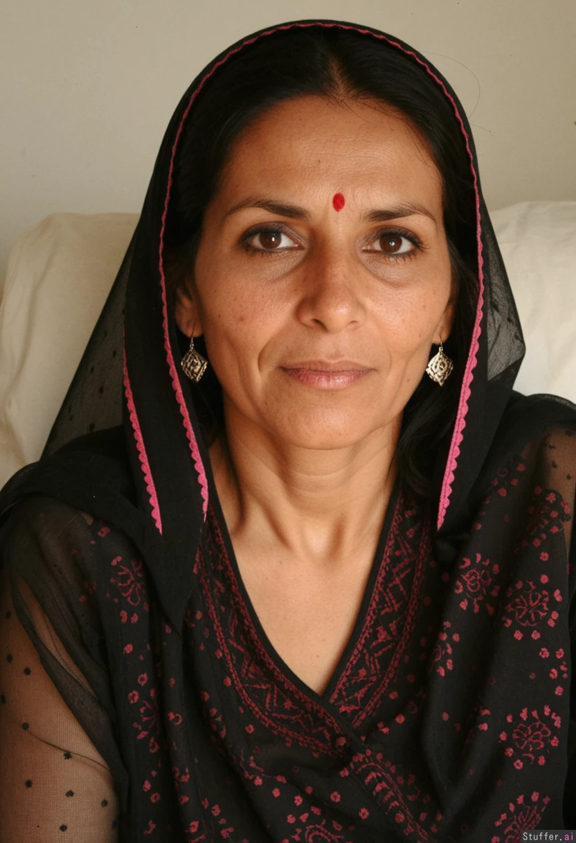 Traditional Pakistani village aunty. Age 45 years old. Age lines.