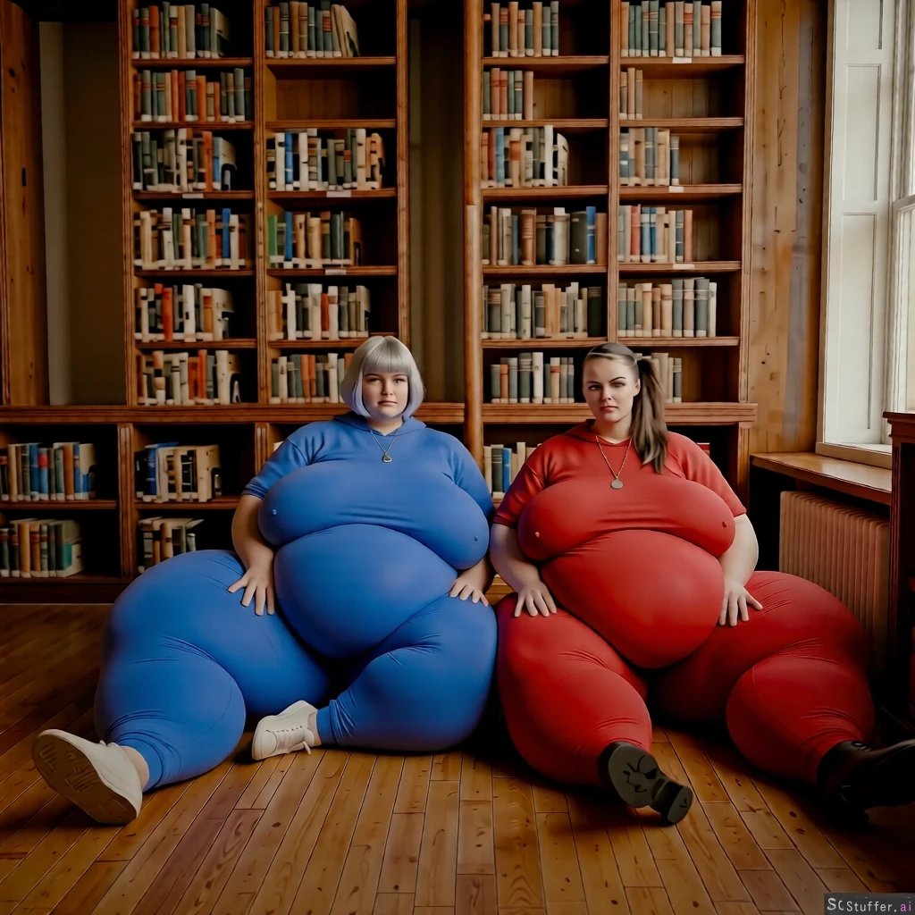 high quality, masterpiece, realistic lighting, high detail, higher saturation and contrast,make their legs and hips and ass bulging and massively bigger and wider and hanging, keep them fully clothed