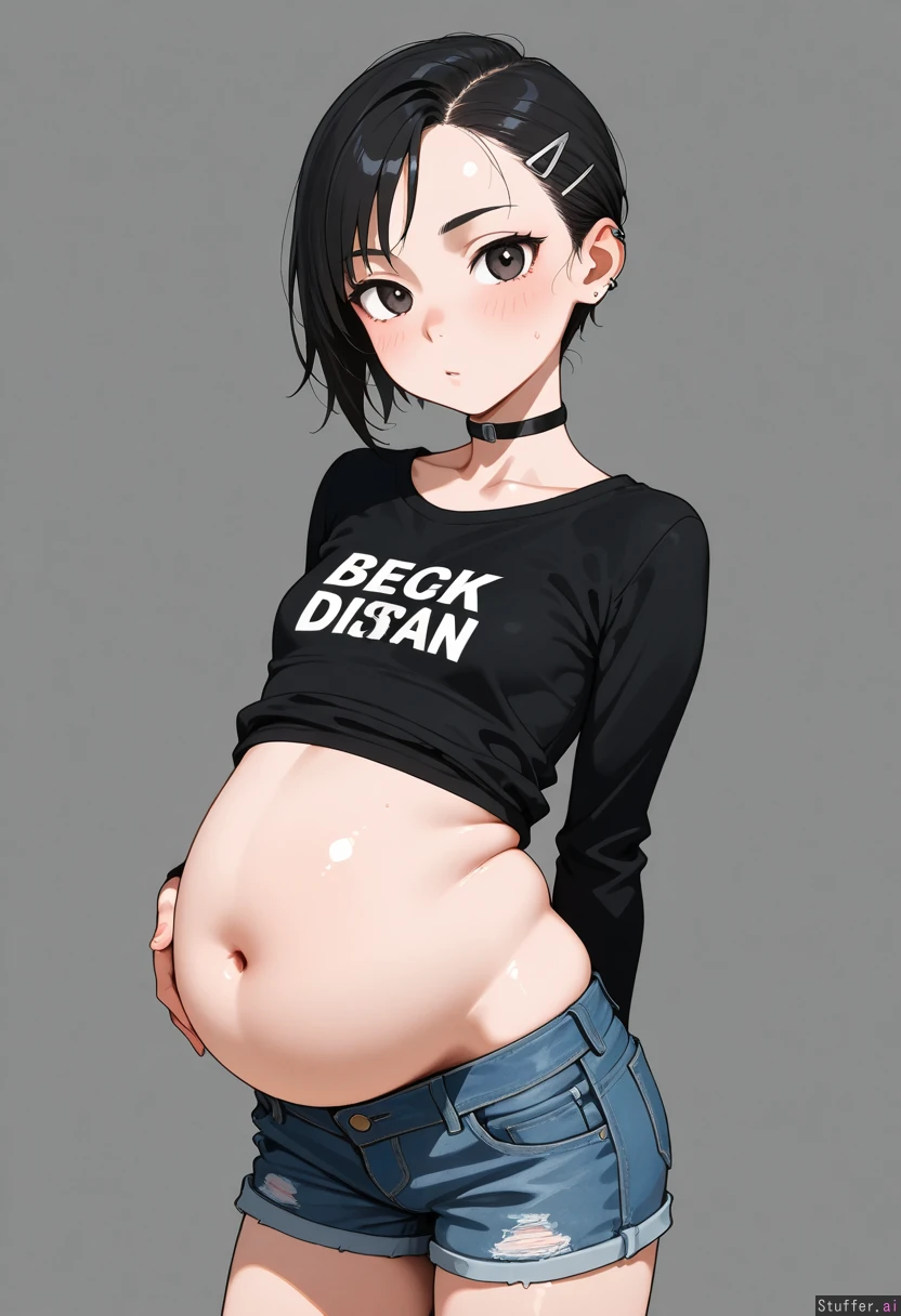 Slim crust punk girl with a big fat distended belly