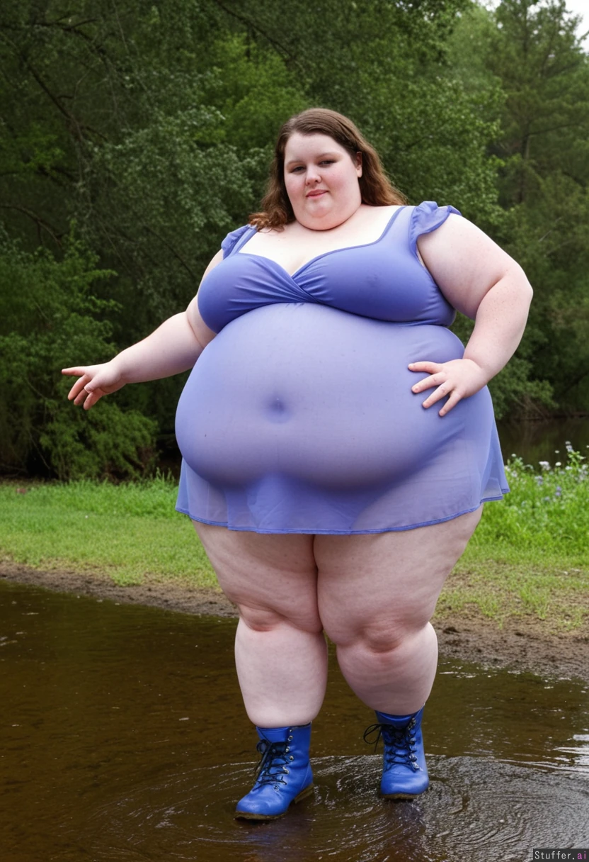 Floodplain forest Pond Periwinkle Hiking boots Sheer dress Dancing Thick thighs Morbidly Obese Gigantic potbelly