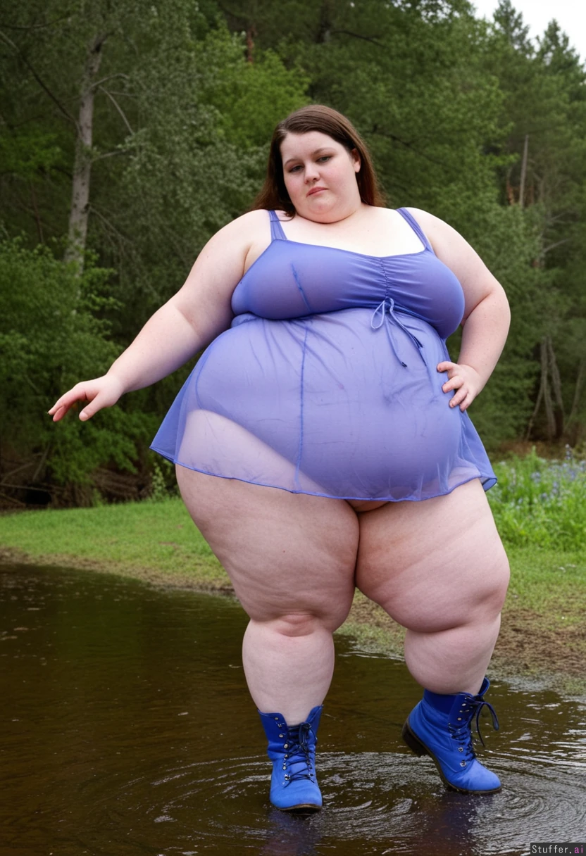 Floodplain forest Pond Periwinkle Hiking boots Sheer dress Dancing Thick thighs Morbidly Obese Gigantic potbelly Seductive Sexy Dangerous