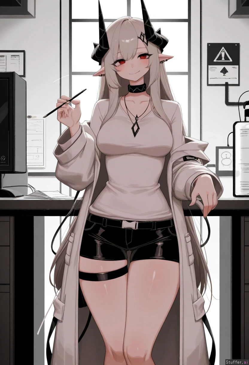 **base** absurdres, best_shading warm_lighting, best_quality, masterpiece, solo, high_resolution, high_rating **artist** RockSolidArt(artist), (usa37107692:1.2), (ohasi_art), (betterwithsalt), (pixiveo) **character** mudrock_(arknights) , mature_milf, **clothes** lab_coat, white_shirt, **settings** Smile, horny, laboratory, scientist **body** (Tall:1.4), long_legs ((Wide_hips), (gigantic_breasts), (gigantic_ass), (gigantic_thighs), (morbidly_obese_female), (love_handls), (Fat_arms:0.85), (fat_legs), :0.1), skinny , small_breasts