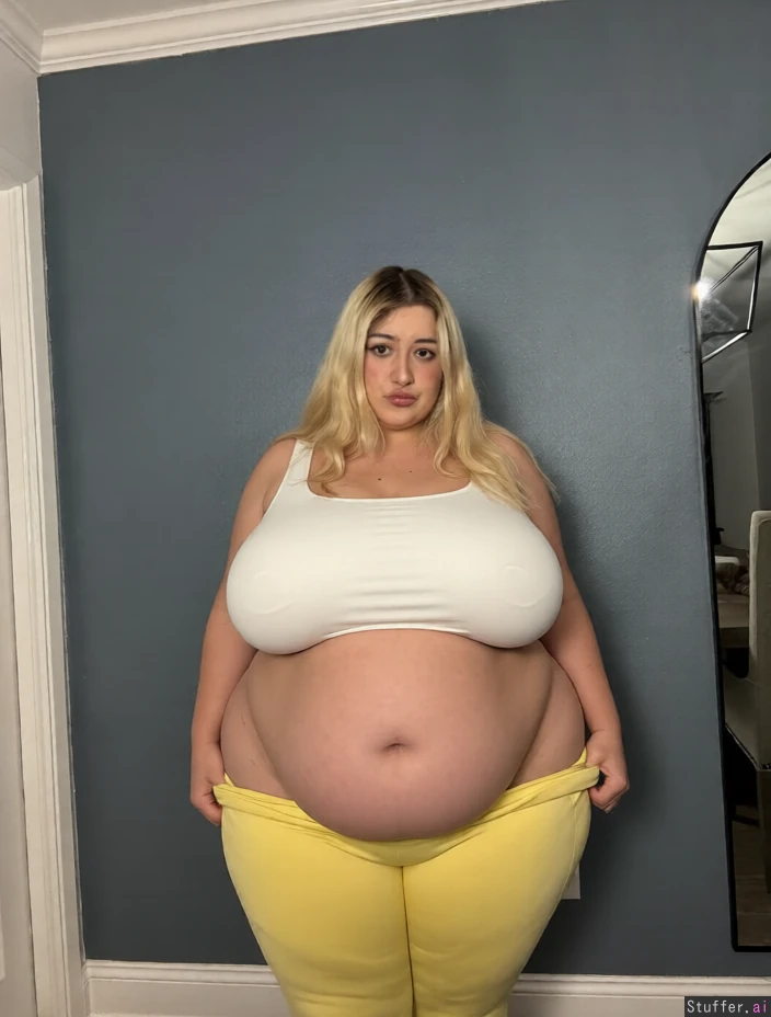 best quality, extremely_obese, dressed, same outfit, same pants, same shirt, body_massive_and_soft, very_large_hanging_belly, very_big_fat_heavy_natural_breasts, extremely_wide_hips_and_thick_thighs, body_overflowing_naturally, heavy_weight_gain, same_pose_and_framing, realistic_mass, same_look_but_significantly_heavier, bigger_top_on,