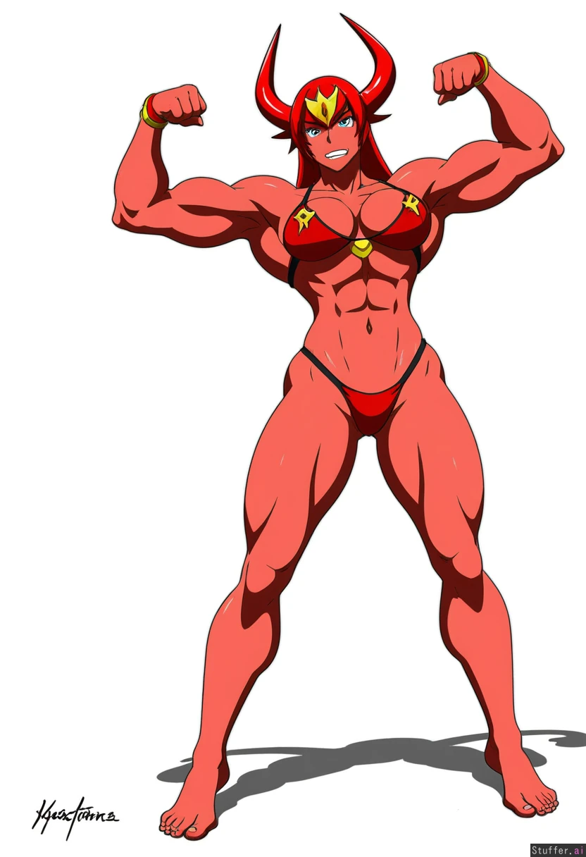 Sexy muscular yoko_littner in bikini barefoot flexing drawn in tengen_toppa_gurren_lagann style