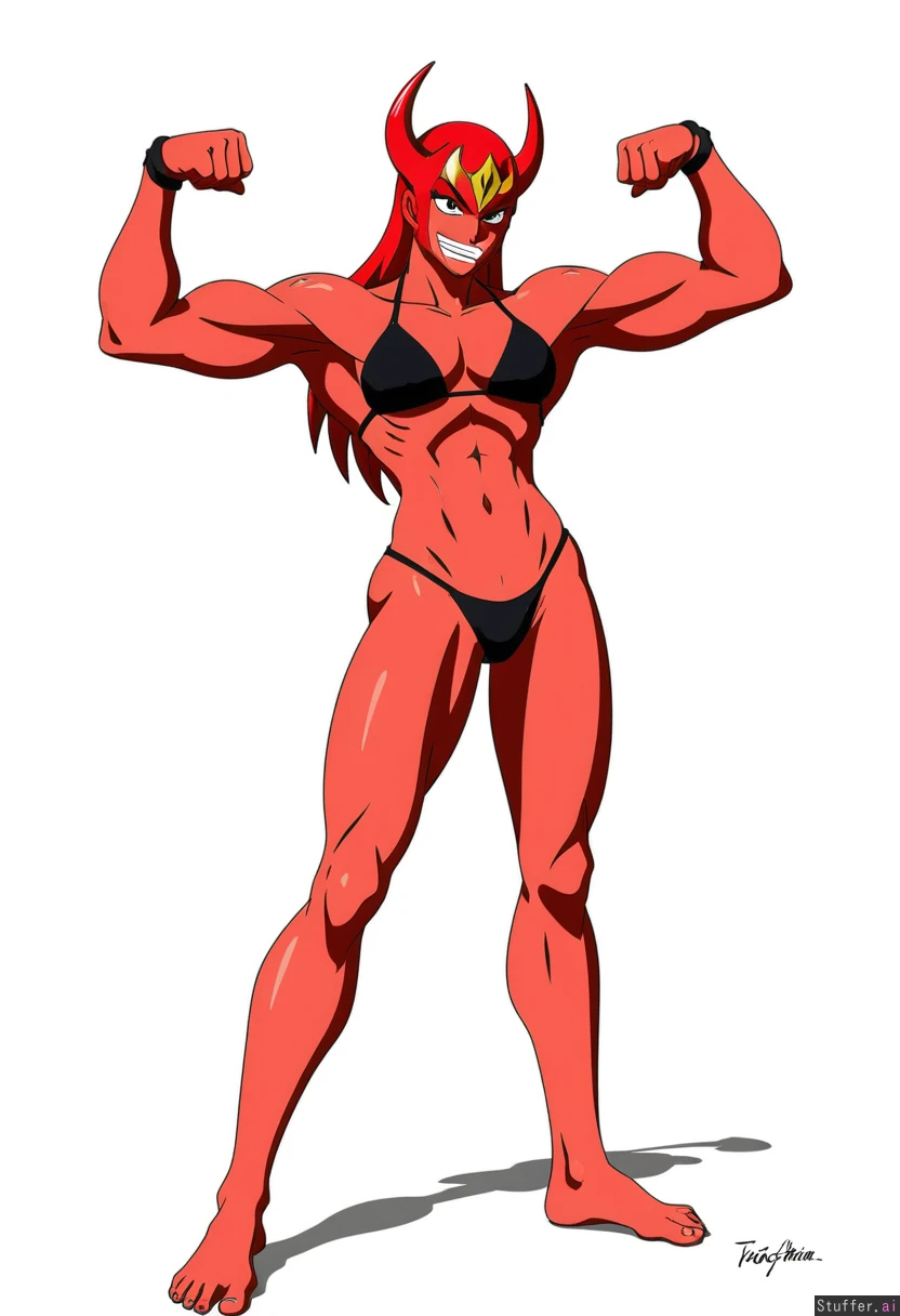 Sexy muscular yoko_littner in bikini barefoot flexing drawn in tengen_toppa_gurren_lagann style
