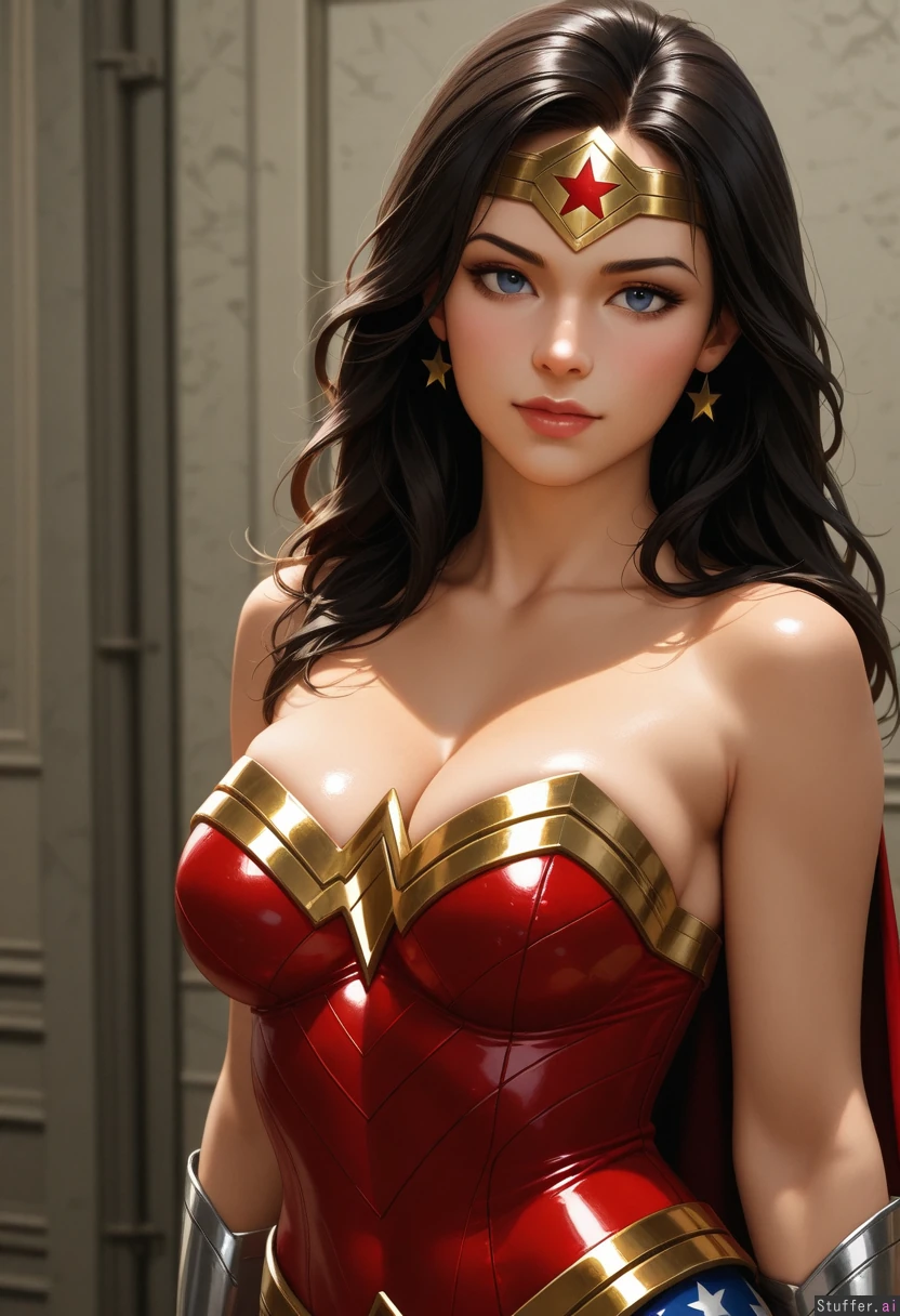 Masterpiece, photorealistic, Wonder Woman of dc_comics Sexy beautiful Deep cleavage, 30 years old,