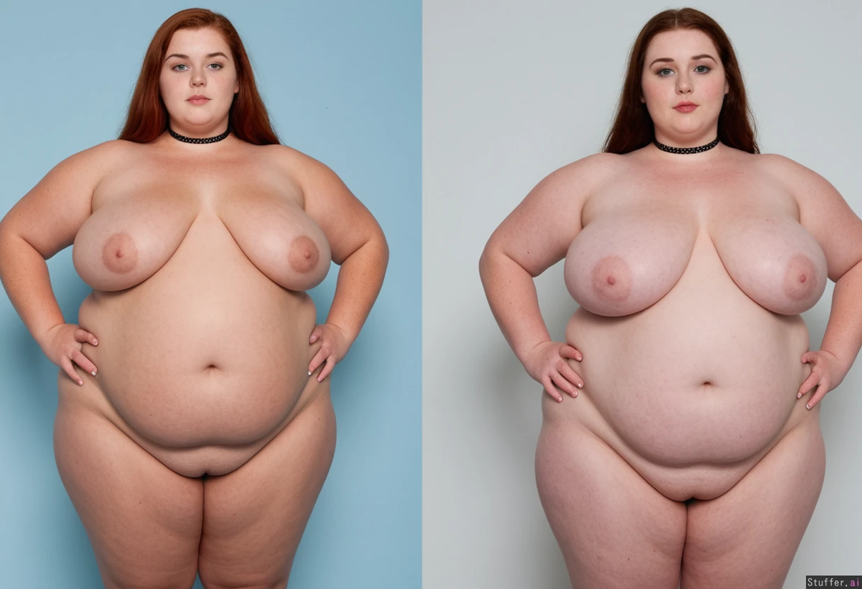 3 nude Irish American sisters, tall, (((one is tanned and very skinny:1.0))), (((one has tan lines and is curvy but bottom heavy:1.0))), (((one is pale and a morbidly obese ssbbw:1.5))), chokers
