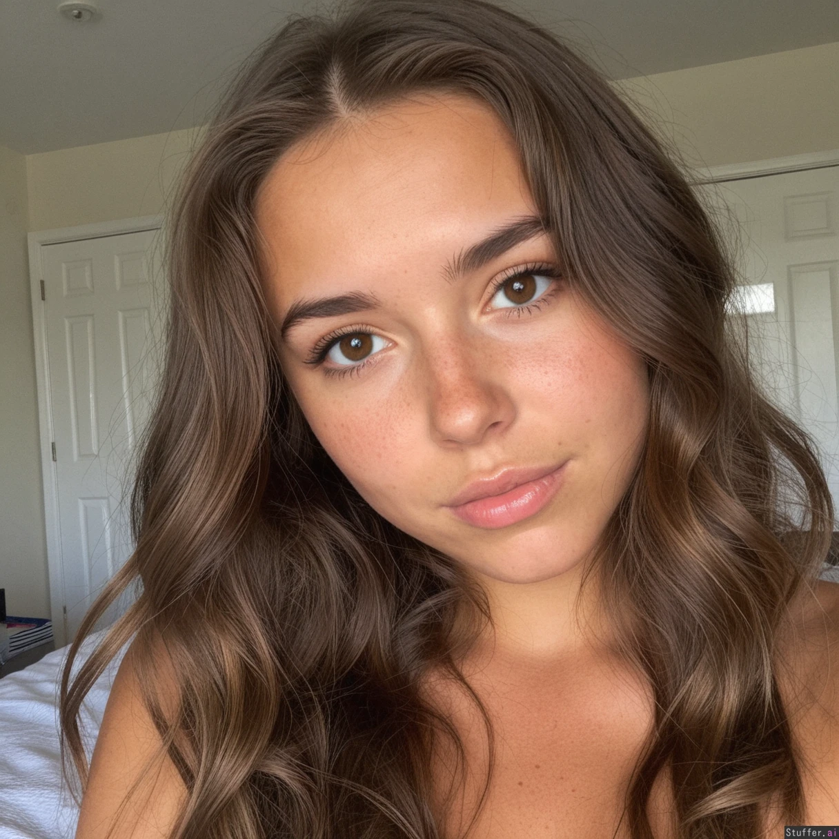 Instagram picture. Cute attractive 19 year dutch girl, ((have a young beautiful face)), thick slightly wavy brown hair, slighly tanned.