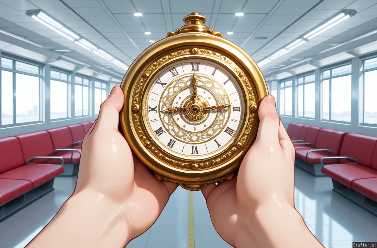 airport, pov, indoors, lugagge to the right, pov hand, left watch
