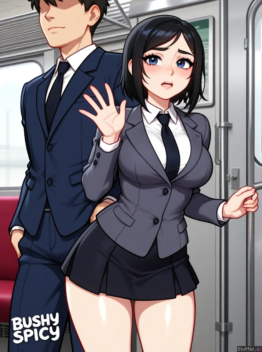 mastubration, train, indoors, chikan, molestation, 1girl, 1male, blushyspicy(artist)