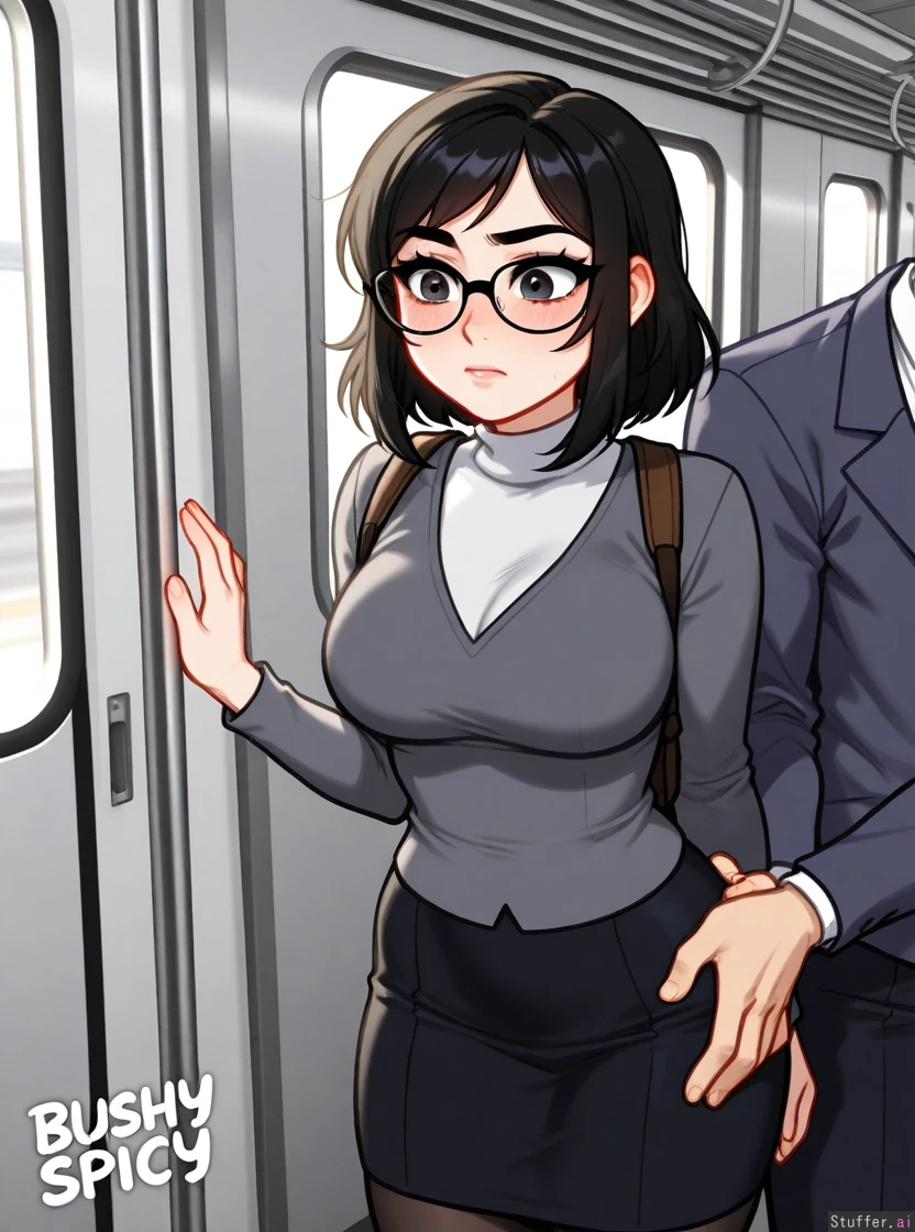 blushyspicy(artist), train, indoors, chikan, molestation, 1girl, 1male, jerking off