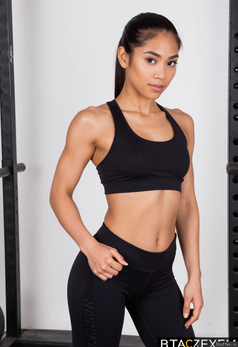 Filipina in black fitness clothes, shirt