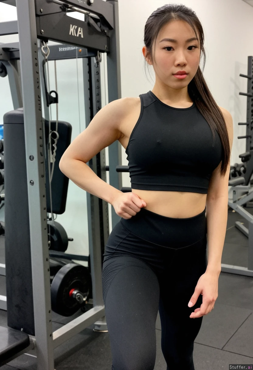 Asian in black fitness clothes, shirt ,Thick
