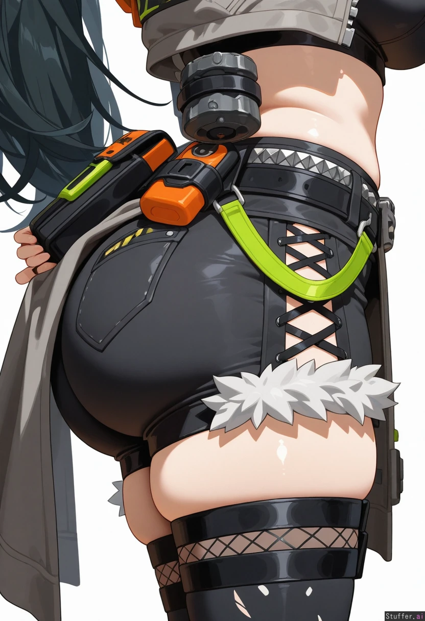Zhu_Yuan_(Zenless Zone Zero), Side view, big butt, standing, white background