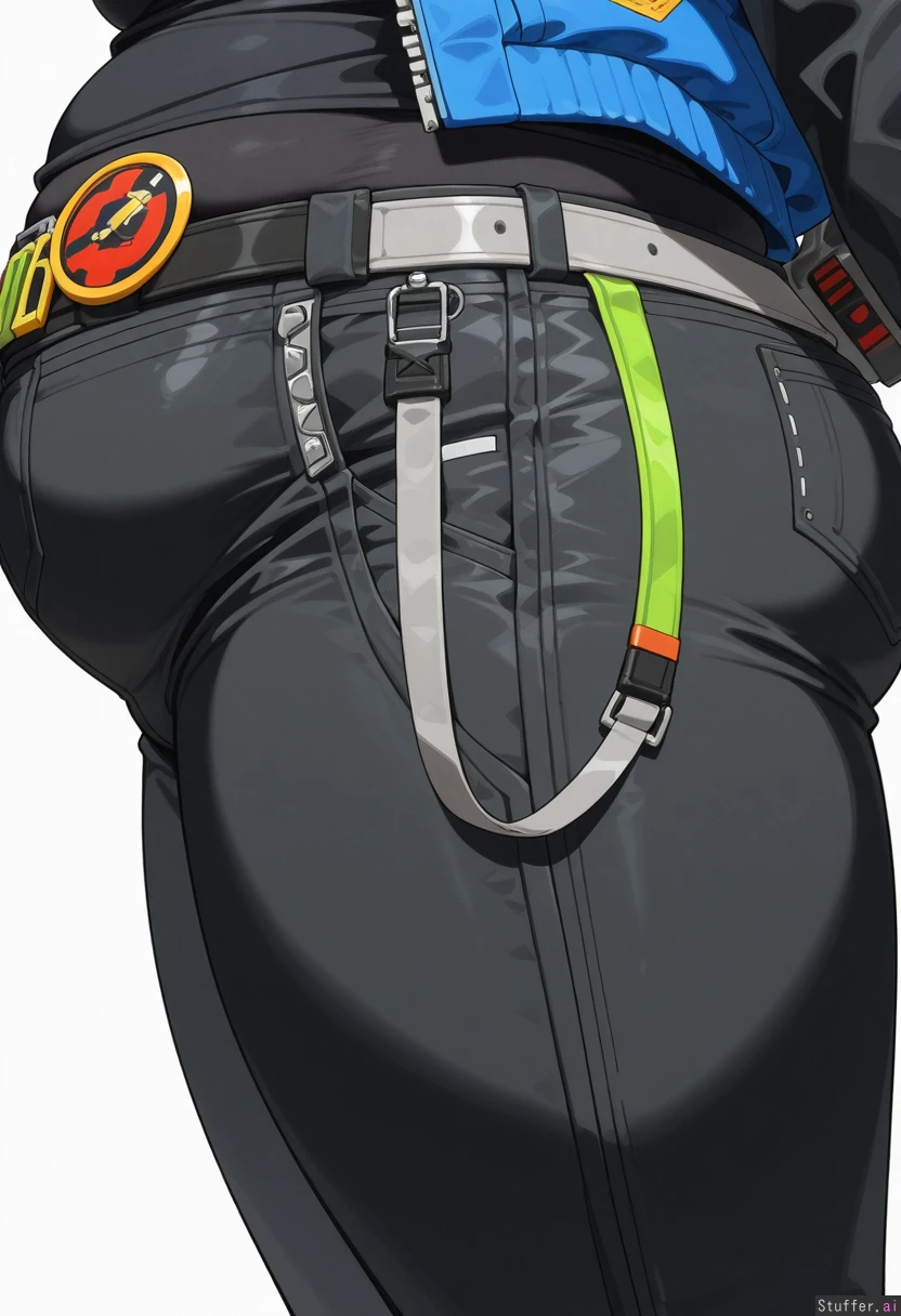 (Solo), Highres, Zhu_Yuan_(Zenless Zone Zero), Side view, standing straight, white background, black pants, weight gain