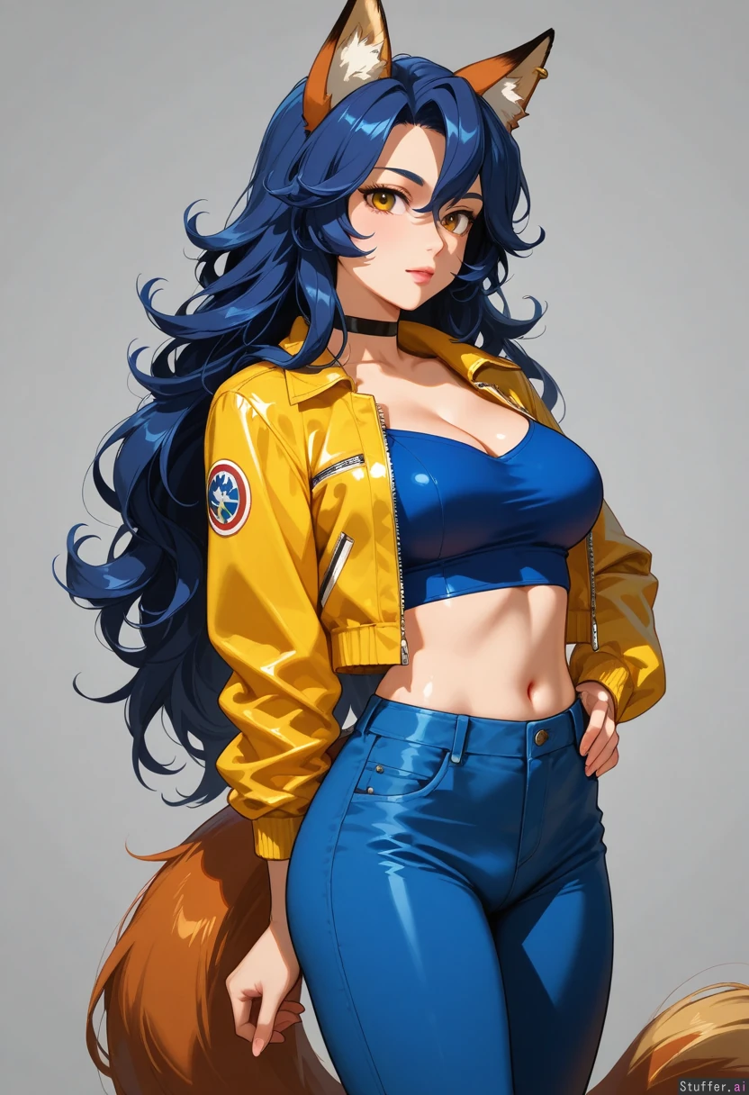(Solo), Highres, Carmelita Fox, blue pants, blue crop top, yellow jacket