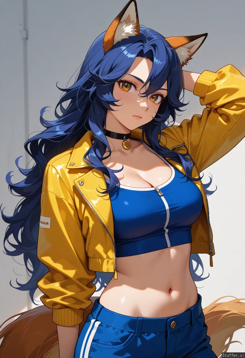 (Solo), Highres, Carmelita Fox, blue pants, blue crop top, yellow jacket