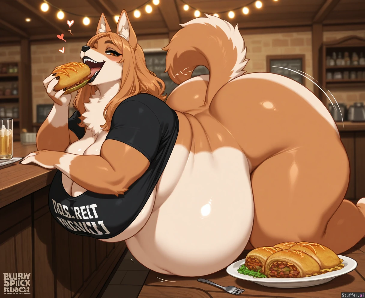 (((Lewdlemage\(artist\))), kipteitei(artist), blushyspicy(artist), BigLoveAlicia(artist), c.cu(artist), spellsx(artist), solo, blushing_hard, hyper_colossal_gigantic_ass:1.9, full_body, laying_on_belly, tall, massive thick thighs, massive fat butt, hyper round plump obese body, (werewolf_anthro, brown_body_fur, tan_belly_fur), long ginger hair, straight hair, loose bangs, thick eyeliner, long eyelashes, thick eyelashes, mascara, amber eyes, beautiful eyebrows, plump lips, black lipstick, dark lip liner, big lips, massive heavy round hyper breasts:1.7, Sexy , mexican_cantina, lights off, morbidly obese waist, straight back, wide legs apart, open mouth, looking at viewer, boob squish, (eyes half closed), happy, cheeky smiling, open mouth, blemish-free skin, immense_wide_hips, morbidly_obese_bulging_neck_fat_roll, hip_expansion, ass_expansion, thigh_expansion, ass_thighs_and hips bigger than body, her ass is bigger than the table, her hips are wider than the table, hyper hips, massive obese hips, massive obese thighs, massive obese legs, colossal overflowing fat butt, feral_snout, hugely morbidly obese thighs, swollen hyper ass and swollen hyper thighs, thighs and ass bigger than body, obese, obese_anthro, obese_female, obese_neck_with_double_chin, bulging_round_obese_cheeks, obese_snout, obese_belly_between_hyper_obese_legs, fat_flabby_obese_arms, fat_obese_hands, fat_obese_feet, fat_obese_legs, fat_obese_jawols, fat_obese_cankles, fat_obese_chin, fat_obese_face, fat_morbidly_obese, hyper_wide_hips, extreme_weight_gain, extreme_fat, extreme_obese, cellulite, immobile, overfeeding, overengorged_hyper_fat_gut, force_feeding, forcefeeding, force-feeding, burritos, tacos, burrito_bigger_than_morbidly_obese_body, massive_fat_ass, massive hyper obese feedee weight gain influencer, hyper ass fat expansion, overstuffing_on_mexican_food, surrounded by hyper fattening mexican foods, holding food_platters larger then her head, food_stuffed_into_mouth, growing extremely hyper obese on too much food, ussbbw influencer swelling wider and fatter into immobility, hyper massive extremely obese ass, her ass is larger than her entire body, ass_bigger_than_body, ass_bigger_than_torso, gigantic_ass, hyper_ass:1.9, big_ass, huge_ass, extreme_ass, massive_ass, ginormous_ass, her ass is bigger than the large bar counter, extreme_ass_fat:1.9, extreme_ass_growth:1.9, her hips are wider than the bar counter, super-sized_ass, her ass is triple the size of her body, her stomach is larger than a table, her arms are swollen thick with lots of fat, (hyper belly:1.6, low heavy belly, belly_hang, navel_blush, fupa, massive fat belly, belly_between_legs, belly_between_thighs, flabby_morbidly_obese_belly, belly_fat_inflation, morbidly obese hyper inflation, colossal_pregnant_belly:2.9) extreme morbidly obese weight gain, out_of_control_weight_gain, heavily pregnant, very overdue pregnancy, flabby_obese_pregnant_y:1.9, band shirt, distressed black t shirt crop-top, underboob, no_bra, bottomless, extreme_overfed_pregnancy:9.9, bulging_fat_neck:1.9,