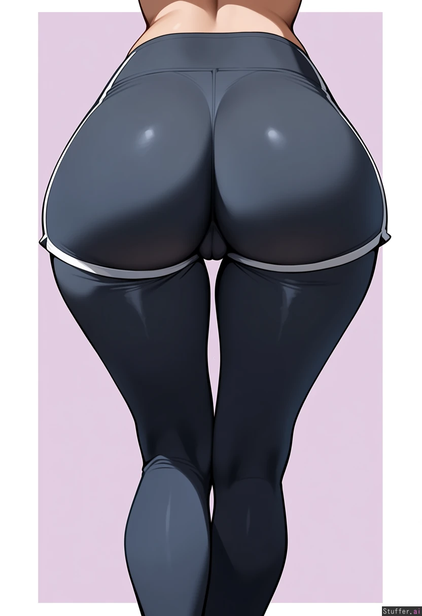 masterpiece, best quality, 1girl, (huge_ass:1.7), (round_ass:1.4), (protruding_ass:1.4), (big_buttocks:1.6), (small_hips:1.3), narrow_hips, (skinny_legs:1.5), (thin_thighs:1.4), skinny, slender, (exaggerated:1.4), disproportionate, anatomical_nonsense, leggings, yoga_pants, athletic_shorts